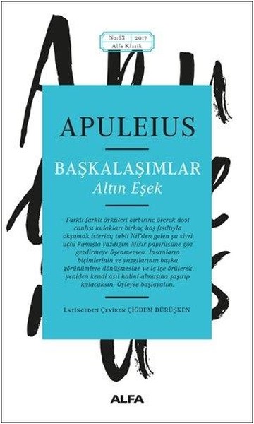 Birbirinden ilginç öyküleri peş peşe dizerek okuruyla ilgisini hiç yitirmeden, karşılıklı duygu alışverişinde bulunarak telaşla, hevesle, istekle yazan, Latin edebiyatının ünlü isimlerinden Lucius Apuleius'un yapıtıdır Başkalaşımlar. Batı edebiyatında yüzlerce çevirisi yapılmış, pek çok sanat eserine esin kaynağı olmuş, görsel sanatların görkemli eserlerine ilham vermiş, 11 kitaplık bir edebiyat klasiğidir.