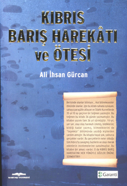 Berisinde olanlar biniyor... Asıl bilinmeyenler ötesinde olanlar. İşte bu kitabı sahada oynayan sahaya paraşütle atlayan ve silahlı kuvvetlerde 35 yıl 10 ay geçiren bir teğmen yazmıştır. Bu teğmen bu kitabı 36 günde yazmamıştır. Bu kitabı yazımı tam 36 yıl sürmüştür... Yıl- yıl, yer- yer, olay-olay harekâtı izlemiş bildiklerini bildiği kadar yazmış bilmediklerini de teşekkür bölümünde yazdığı kişilerden yardım almıştır. Bu kitapta hayal yok yalnız gerçekler vardır. Bu gerçeklerin neler olduğunu tüm Kıbrıs'ta savaşmış Gazilerin ve olayı merak edenlerin incelenmesine sunulmuştur. Bu kitabın bir amacı vardır: O da Kıbrıs Barış Harekâtını her yönüyle gözler önüne sermektir.