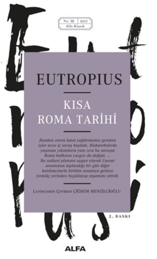 İS 4. yüzyılda yaşamış ünlü tarihçi Eutropius, İmparator Valens'in isteği üzerine Roma tarihini satır satır özetleyen bir eser kaleme alır. Kısa Roma Tarihi adıyla İmparator'a sunup ölümsüzleştirdiği bu eserinde amacı, Roma'nın efsanevi kuruluşunun miladı sayılan İÖ 753 yılından, İmparator Iovianus'un hayata gözlerini yumduğu İS 364 yılına kadar geçen yaklaşık bin yıllık sürede gerçekleşen dönüm noktası niteliğindeki belli başlı tarihi olayları okuyucusunun gözünde yeniden canlandırmaktır. Bu uğurda ne savaşların uğultusu yıldırır onu ne de sarayların entrikaları. Savaşlar kadar barış dönemlerinin hikâyesini de anlatır dili döndüğünce. Sonra kralların, devlet adamlarının ve imparatorların hayatlarına dair anekdotlarla süsler eserini ve Roma'nın kurucusu Romulus'tan başlayıp Caesar'ın katline, oradan da imparatorlar devrine uzanan olaylar zincirini kronolojik sıraya dikkat ederek ustalıkla örer. Üstelik yalın bir anlatımla kaleme aldığı elinizdeki eser sayesinde Roma edebiyatının seçkin eserleri arasına da adını yazdırmayı başarır.85